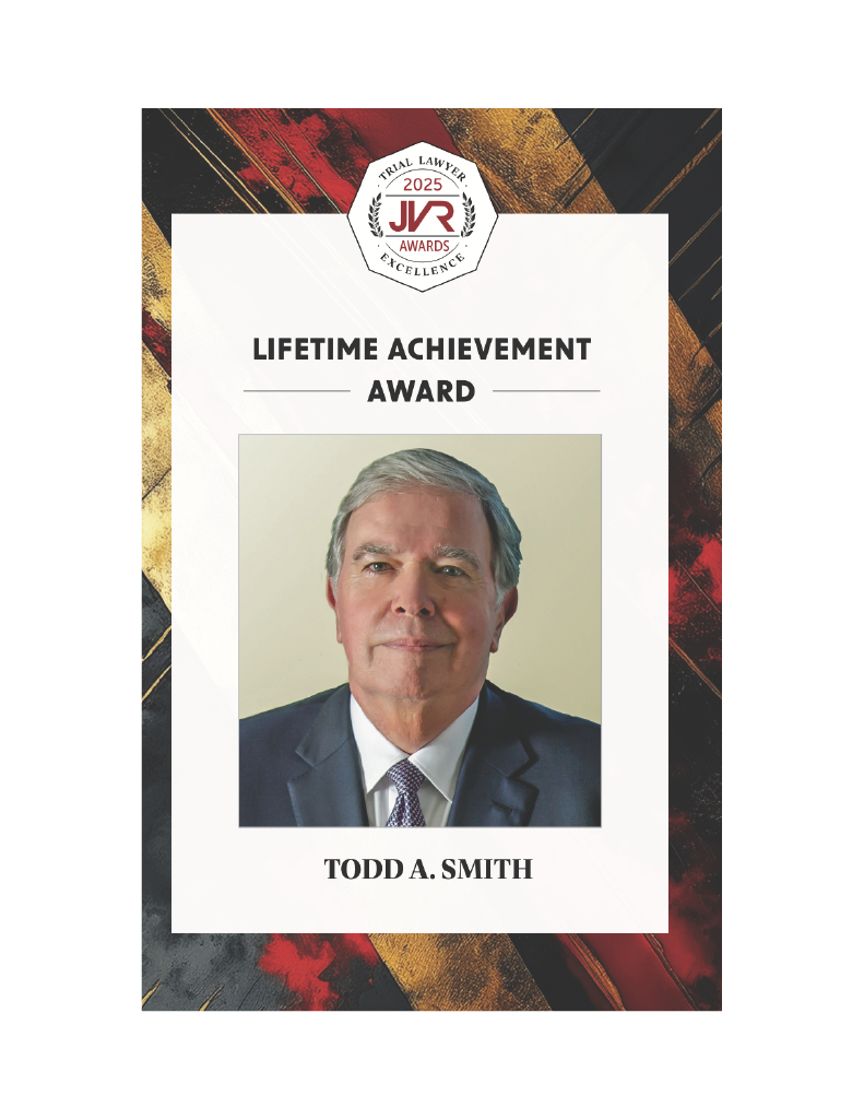 We are pleased to share that Todd A. Smith has received the 2025 Trial Lawyer Lifetime Achievement Award. His outstanding career and successes have been captured in this special issue of the Jury Verdict Reporter. Todd is recognized for his exceptional advocacy, high-dollar verdicts, and ethical standards throughout his passionate career as a personal injury trial attorney.